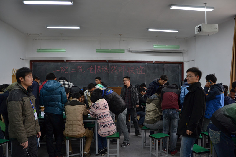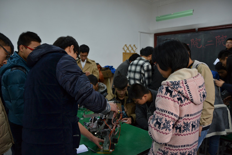 科协向参加此次活动的来宾们表示最诚挚的欢迎,并具体说明了此次活动的相关流程与注意事项。接着,机械与动力工程学院科协创新实践部部长也发表了讲话,并再次强调了活动中的相关注意事项。之后,本次联谊活动正式开始。活动中,两院科协的同学们坐在一起,互相交流在科技创新上的想法,大家一起动手,进行机器人的拆装,制作,试验。会场洋溢着热烈的讨论气氛,大家热情的交流想法方法,科技思维在会场中摩擦,生出灵感的火花,让联谊活动几乎变成了一场喷涌着科技创新灵感的头脑风暴。最后,主持人宣布活动结束,但大家仍旧不想放下手里的工作,不想停住喷涌的灵感,在同学们不舍的叹息声和热烈的掌声中,此次联谊活动圆满结束。