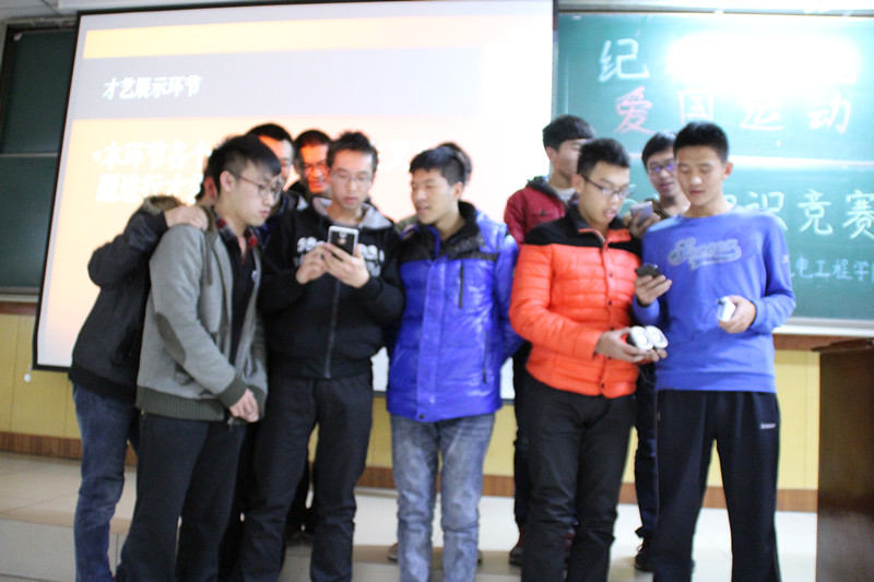 比赛尚未开始,各参赛班级队伍已在场下摩拳擦掌,积极准备。随着主持人的上场,竞赛正式开始。此次比赛分为才艺展示和答题两个环节。在才艺展示环节中,首先,由14010741班的同学给我们带来了一曲慷慨激昂的《中国军魂》,当它还在现场观众的心中激荡时,14010641班和14010441班的同学又为我们分别带来了悠扬的吉他歌唱和抒情的小提琴演奏。此外,参赛班级的诗朗诵亦更是将现场的气氛推到了高潮。在答题环节中,由于现场气氛活跃,外联实践部部长薛宏杰学长也客串起主持人的角色,为参赛队员一一读题并判定正误。同时各个参赛队伍也展开了激烈的角逐,尽管竞争激烈,但是参赛队员们依旧从容淡定,回答问题也是条理清晰。答题结束之后,学校思源艺社的同学为我们带来了精彩的舞蹈表演。最后,老教师的寄语为此次比赛画上了一个完美的句号。在此次比赛中,14010441班级获得冠军,1410741班获得亚军,14010341获得了季军。