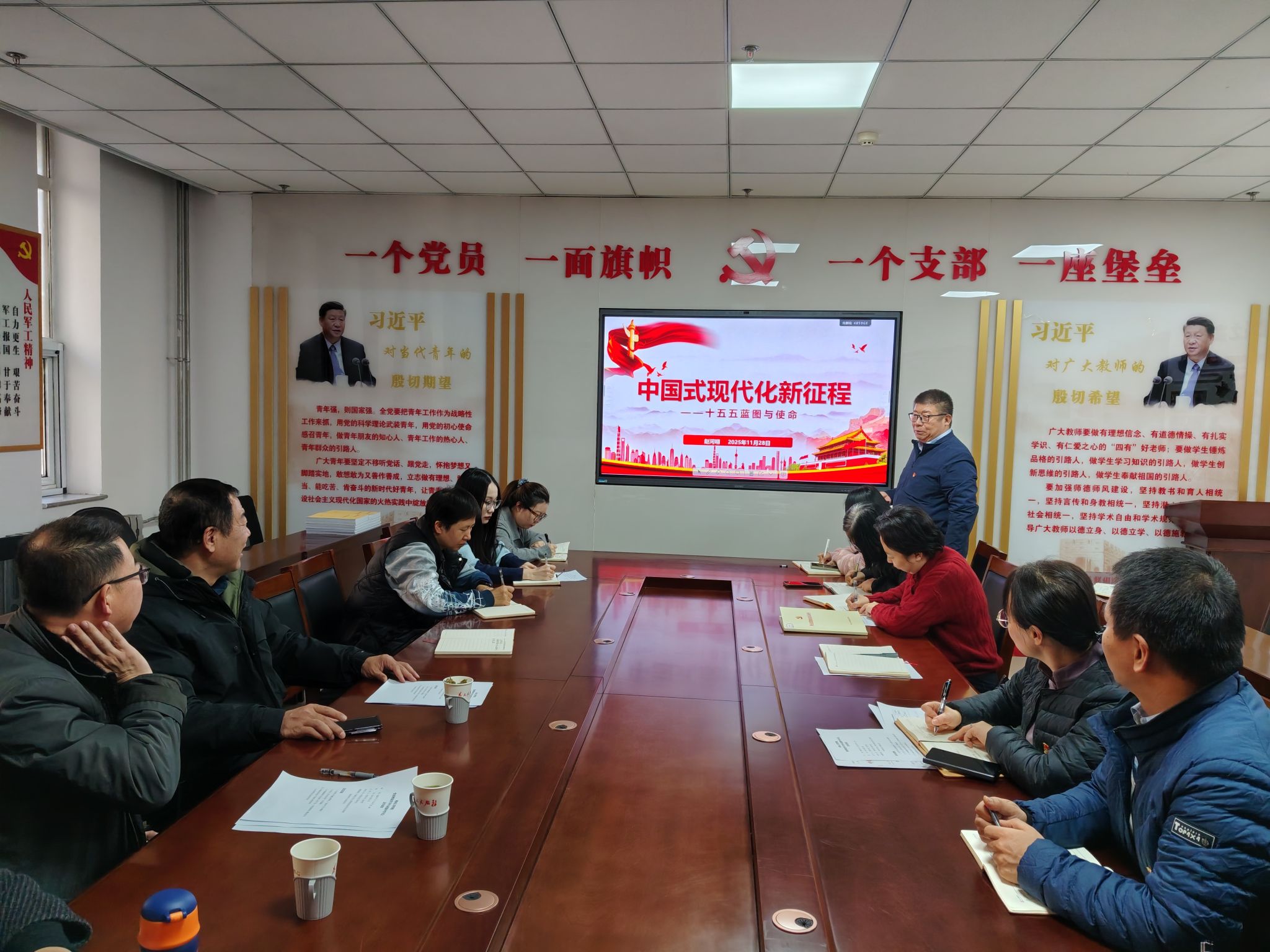 赵河明书记以《中国式现代化新征程》为题,从二十届四中全会的时代背景与核心要义、“十四五” 时期学院党建与事业发展成效、“十五五”规划编制的指导原则与重点任务、高校服务国家战略的使命担当、全面从严治党的实践要求五个方面,对四中全会精神进行系统解读。他强调,学院要把四中全会精神贯穿办学治院全过程,在高端装备制造、智能制造等优势领域持续发力,推动人才培养、科研创新与国家“十五五”产业升级需求精准对接、深度融合。