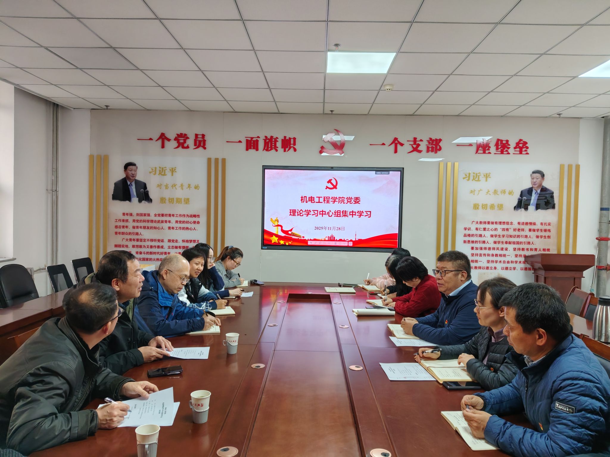 最后,赵河明书记总结强调,全院上下要以此次集中学习为契机,把学习贯彻四中全会精神作为当前和今后一个时期的重要政治任务,切实将全会精神转化为“十五五”时期学院高质量发展的具体举措,以党建引领学科建设、人才培养、科研创新提质增效,为国家高端装备制造领域发展贡献机电力量。