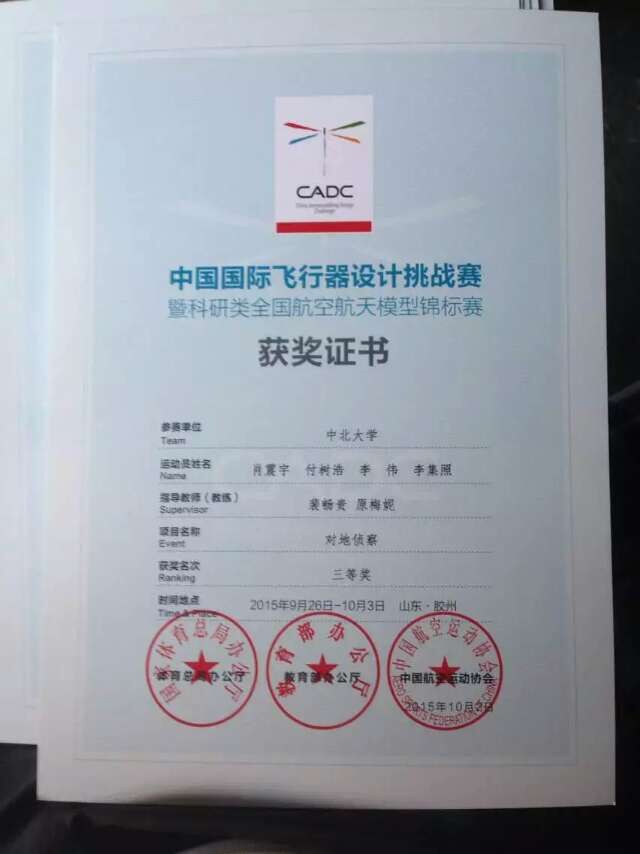 中国国际飞行器设计挑战赛暨科研类全国航空航天模型锦标赛CADC“2015”是由国家体育总局、教育部、中国国际飞行器设计挑战赛组委会共同主办的一项大型国家级赛事,于2015年9月26-10月3日在山东胶州顺利召开。该比赛吸引了清华、北航、北理工、西工大、西交大、南航等100余所高校参赛。山西省参加的高校有av影片