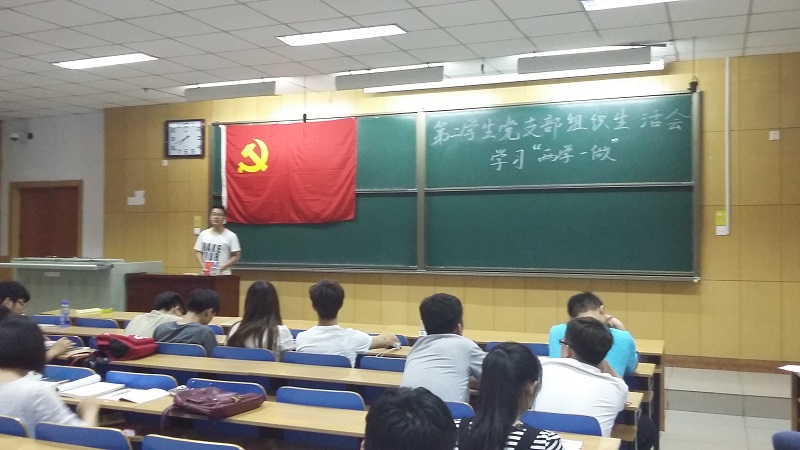 第二学生党支部于11108H教室召开了“两学一做”的学习交流会,此次会议由支部书记谭玉琳同志主持,支部所有正式党员、预备党员参加会议。