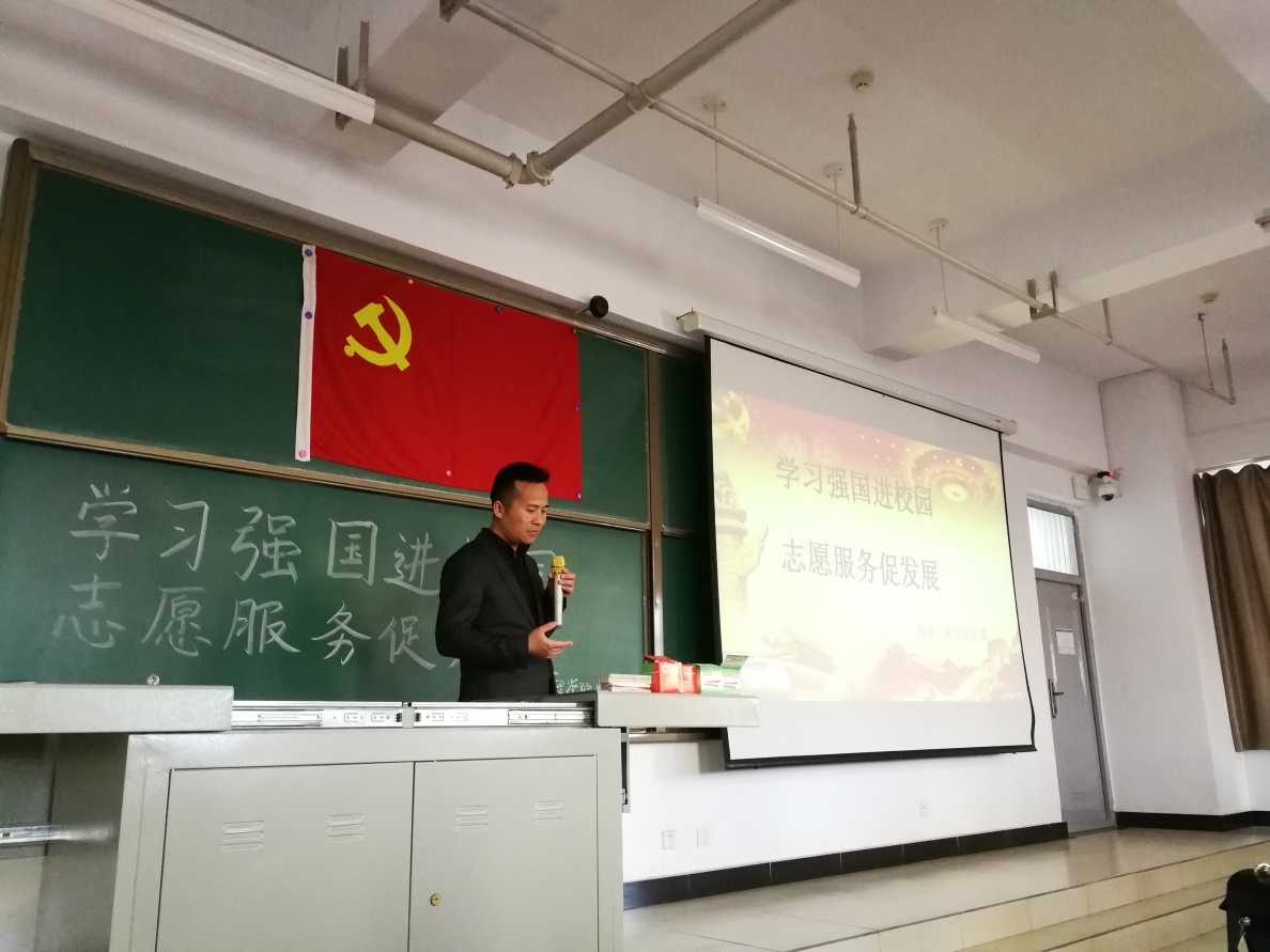 在15402H召开了以“学习强国进校园,志愿服务促发展”为主题的春季学生党员大会,院党委副书记刘光老师,学生科张丽花老师、贺婧老师、段雪倩老师、王姣老师、刘凯琼老师及全体本科生党员参加了此次会议。