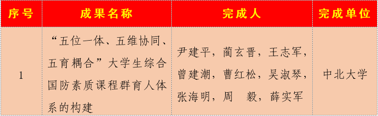成果名称:“五位一体、五维协同、五育耦合”大学生综合国防素质课程群育人体系的构建