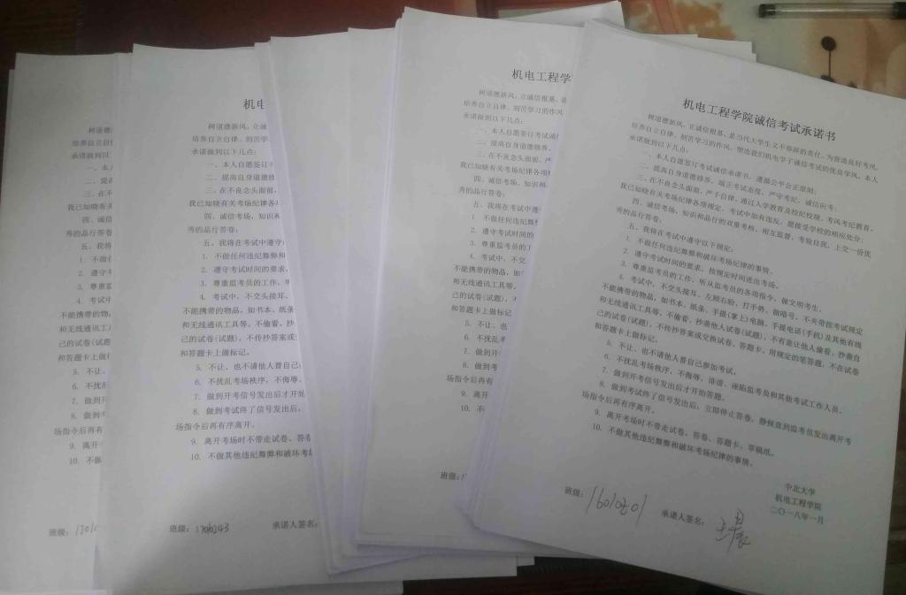 诚信考试承诺书》,承诺考试中严格遵守考场纪律、诚信应考,坚决杜绝抄袭、偷看等舞弊行为。