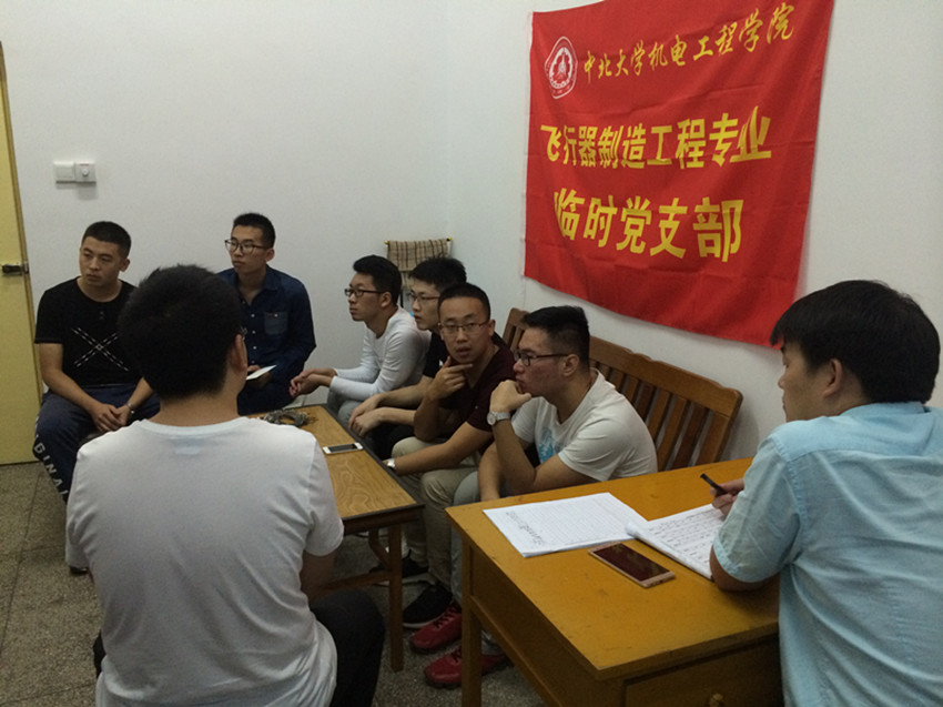 2017年9月19日,飞行器制造工程专业临时党支部在中航工业西飞成立并召开组织生活会,会议由赵熹老师主持,参加会议的还有喻明让老师及飞行器制造工程专业的9名党员同志。