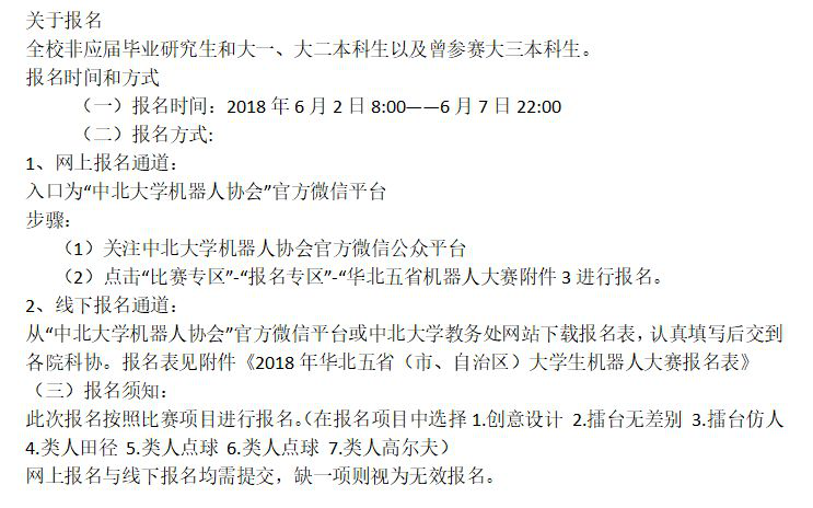 机器人创新平台研究决定,面向全校开展“2018年华北五省(市、自治区)大学生机器人大赛”的报名工作。